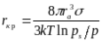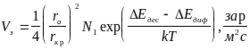 Скорость образования зародышей Vз зависит от rа и rкр, потока осаждающихся на единицу поверхности в единицу времени атомов или молекул N1, энергии активации десорбции Eдес и диффузии Eдиф , температуры поверхности подложки T и может быть рассчитана по следующей формуле: