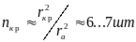 где ra – радиус одного адатома; ps и p - давление насыщенного пара при температуре испарения материала и температуре поверхности подложки T, соответственно; - коэффициент поверхностного натяжения (10-4 Дж/см2); Eдис - энергия диссоциации зародыша (2.103 Дж/см3). При приведенных в скобках данных критический радиус зародыша и количество составляющих его атомов приблизительно равны: