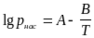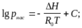 где pнас – давление насыщенного пара испаряемого материала, Па; T - температура материала, К; H - энтальпия газа (г) и жидкости (ж), ккал/кмоль; V-объем газа (г) и жидкости (ж), м3 (Vг>>Vж); H-теплота испарения, ккал/кмоль.
