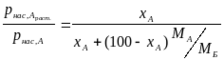 где xА - содержание материала А в растворе, массовые %; MА,Б - молекулярные массы материалов А и B сплава, кг/кмоль.