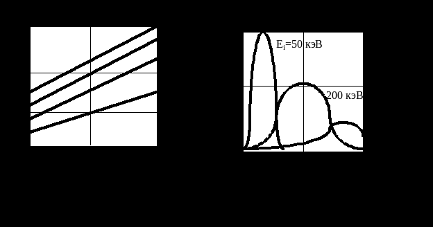 где kTi и Mi – энергия (Дж) и молекулярная масса иона (кг/кмоль). Плотность ионного тока ji= Qi.qe, А/м2, а толщина прикатодной области h составляет приблизительно