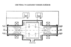 упрощение и удешевление систем обеспечения высокой однородности пленок по толщине на подложках большого диаметра, и в случае реализации его в магнетронных распылительных системах (МРС) не уступает термо-вакуумному по скорости осаждения.