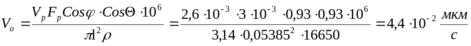 Cosφ=CosΘ=r/l=386/386,5=0,998=1, Vo=Vo,зад.=10-3 мкм/с, Δ=1, R=Rном.