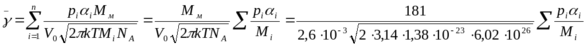 где pi - парциальное давление i-го газа (“загрязнения”), Па; i - коэффициент аккомодации i-го газа (“загрязнения”); T - температура стенок вакуумной камеры, К; Mi - молекулярная масса i-го газа (“загрязнения”), кг/кмоль; Vо - скорость осаждения пленки, кг/(м2.с); Mм - молекулярная масса материала пленки, кг/кмоль; k – постоянная Больцмана, Дж/К; NA – число Авогадро, шт./кмоль.