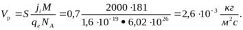 где S – коэффициент распыления, атом/ион (из таблицы); ji-плотность ионного тока, А/м2 (из таблицы); M-молекулярная масса (кг/кмоль) распыляемого вещества; qe- заряд электрона, Кл; NA– число Авогадро, атом/кмоль.