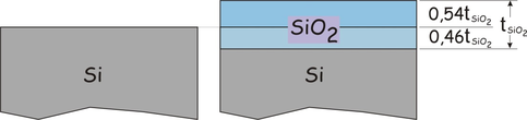 1. При термическом оксидировании часть слоя SiO2 врастает в исходную поверхность кремниевой пластины, а часть – нарастает над ней, следуя определенному соотношению. Получите аналитически это соотношение.