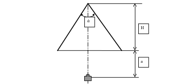 Рассчитать максимальную неравномерность толщины пленки, осаждаемой из точечного источника на внутреннюю поверхность конуса с углом при вершине ά=60о и высотой H=100 мм. Источник размещен на одной оси с конусом и отстоит от линии его основания на величину a=10 мм, согласно прилагаемой схемы: