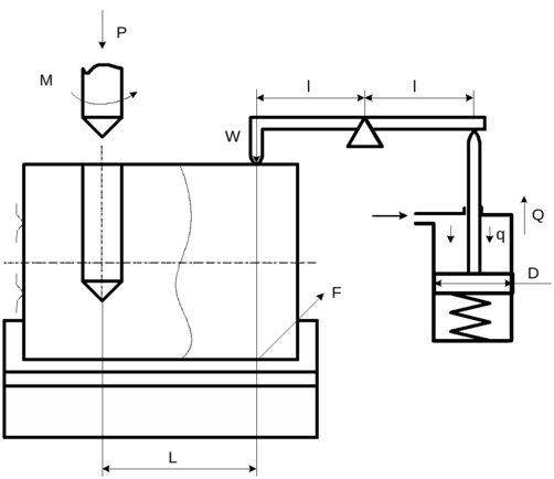 При l1 = l2 Q=W=6 кН, тогда W = q·D2/4, отсюда: D=4W/q, где q=0,5МПа.