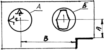 Деталь с отверстием А базируется на длинный палец. Требуется выбрать метод базирования второго отверстия Б, являющегося дополнительной базой. Этот случай аналогичен рассмотренному выше (рис.21), где отверстие имело ось параллельную плоскости. Поэтому здесь отверстие Б необходимо установить на короткий срезанный палец 3.