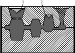 | Рис. 3.12. Предотвращение усадочных раковин и пористости с помощью прибылей: 1 – верхняя открытая прибыль; 2 – боковая закрытая прибыль | ||