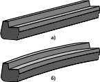 | Рис. 3.16. Возможные формы опорной части отлитого корпуса: а – непокоробленная; б – выгнутая вверх вследствие коробления |