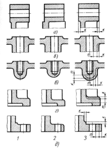 , вид в) или изменяя соответствующим образом конфигурацию детали (вид г).