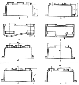 . Иначе при смещении литых поверхностей может наступить недопустимое утонение стенки (вид е).