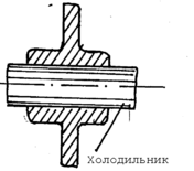 Большой непроточный узел, не имеющий под собой прибыли, нельзя переохладить извне. Однако его можно обезвредить установкой внутреннего холодильника (рис. 20), изготавливаемого из материала отливки или из другого материала.