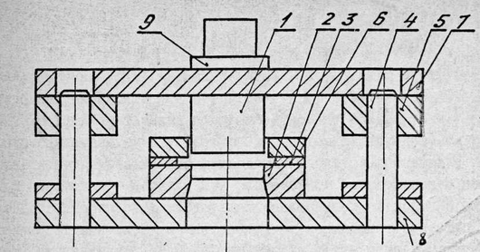 V - корпусных деталей штампа - верхней плиты (7), нижней плиты (8);