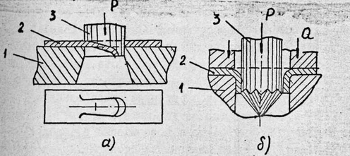 1 – матрица, 2 – заготовка, 3 - пуансон
