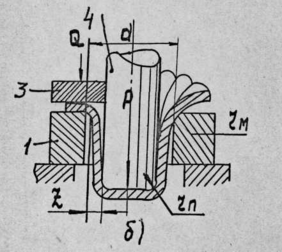 Вытяжка без утонения цилиндрической детали, схема которой показана на рисунке 20, б, выполняется, когда зазор