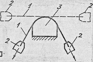 исунок 17. Гибка с растяжением: 1 – заготовка, 2 – зажим, 3 - пуансон