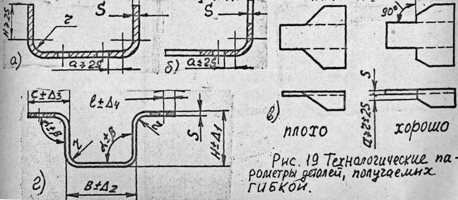исунок 19. Технологические параметры деталей, получаемых гибкой