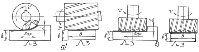 Рис.5 Схемы фрезерования: а – цилиндрическое; б – торцевое