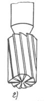 Рис.4. Типы фрез: а – цилиндрические; б – торцевые; в – дисковые; г – концевые; д – угловые; е – шпоночные; ж – фасонные; з – остроконечная; и – затылочная форма зуба