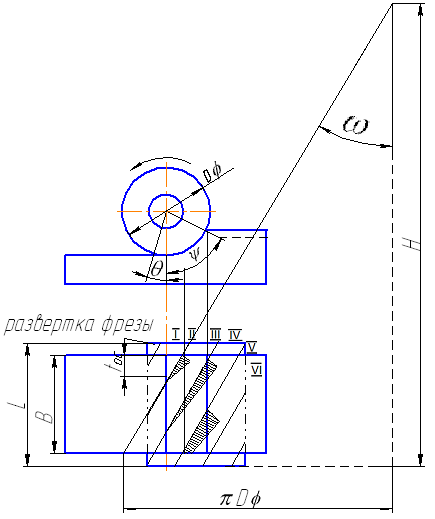 Условие равномерности фрезерования цилиндрическими фрезами с винтовыми зубьями будет выполняться при постоянстве суммарного сечения срезаемого материала.