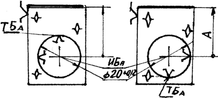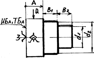 Эскиз 2 (рис.11,в). Исходный размер выбран тот же - А. Но в качестве технологической базы назначена поверхность ТБА, т.е. исходная и технологическая базы не совпадают. Это условие обозначают так ИБАТБА. В данном варианте несомненно проще и удобнее установка детали. Но на точность размера А оказывает влияние погрешность от несовмещения баз. В самом деле, положение исходной базы размера А меняется для каждой детали в пределах допуска с на размер С, т.е. точность размера А зависит от допуска на размер, соединяющий исходную и технологическую базы.