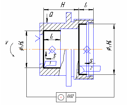 Деталь базируется и закрепляется в самоцентрирующее устройство по наружной черной базе. При обработке резцом 1 плечико обрабатывается при поперечной подаче. Это сложнее, но зато точнее. Можно обеспечить биение плечика до 0,01 мм. Резцом 2 плечико получают режущей кромкой, установленной перпендикулярно оси вращения. Точность меньше, но зато проще операция, не надо отводить резец. Размер Н, как внутрикомплексный, выдерживается за счет настройки станка.