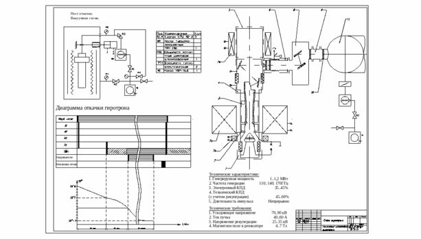 | 20% объема работ | | Эквивалентные схемы откачки, принципиальная вакуумная схема, диаграмма откачки. Таблица параметров трубопроводов и режимов их откачки. Технологическая диаграмма работы установки. |