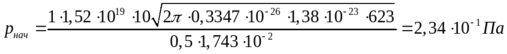 2. Рассчитаем длительность откачки той же камеры до заданного давления при температуре 623К (350°С).