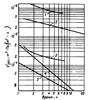 В случае, если вакуумная полость ограничивается стенками, изготовленными из разных материалов, газовыделение должно суммироваться из газовыделений всех элементов, ограничивающих вакуумную систему.