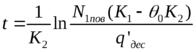 При расчетах по уравнению (48) следует иметь и виду, что значения не могут превышать его величину при t , определенную по соотношениям (37), (41) или (42). Так как отношение K1/K2 = , то уравнение (27-48) можно записать в виде: