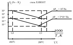 Напомним, что основным газом, диффундирующим (проникающим) через резину является гелий, с парциальным давлением в атмосфере р1=5,32*10-1 Па. Основным газом, диффундирующим через сталь является водород с парциальным давлением в атмосфере р1=3,99*10-2 Па.
