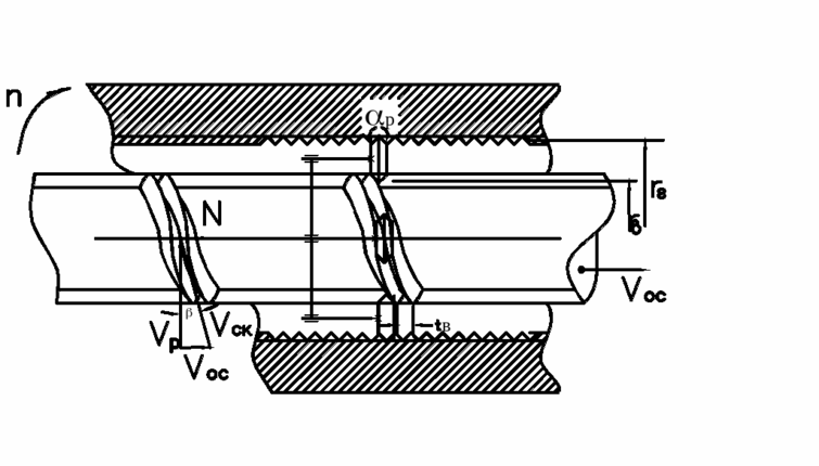 Рис. 4 Схема контактного взаимодействия в планетарно-винтовой передаче