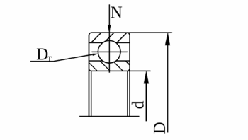 N=80H; n=2000об/мин; радиус желоба: ρж=2,56•10-3м; диаметр шариков DТ=4,74•10-3м;