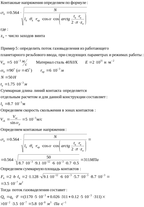 Пример 2: рассчитать газовыделение QК из шарикоподшипника серии 100 в вакууме при следующих параметрах: