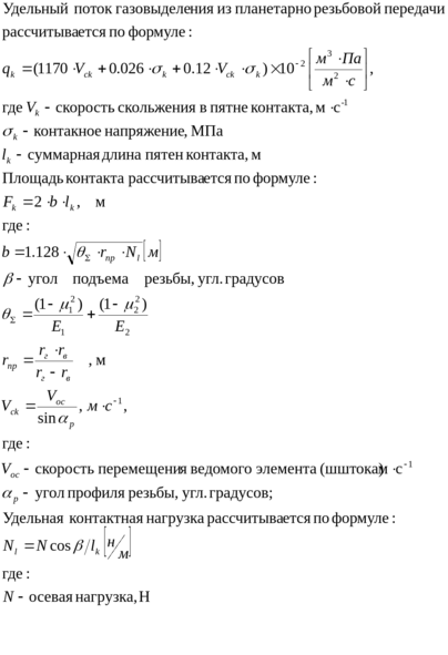 Удельное газовыделение для кинематической пары кольцо подшипника-тела качения выражается соотношением: