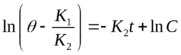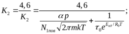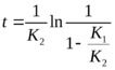При расчетах по уравнению (24) следует иметь и виду, что значения  не могут превышать его величину при t  , определенную по соотношениям (13), (17) или (18). Так как отношение K1/K2 = , то уравнение (3-24) можно записать в виде: