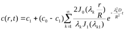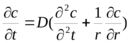 Процесс диффузии в цилиндрических телах, длина которых гораздо больше радиуса, описывается дифференциальным уравнением вида