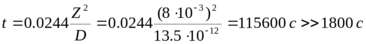 Для случая, когда концентрация газа на внешней поверхности пластины равна начальной концентрации газа в материале период времени, после которого процесс обезгаживания перейдет в процесс проникновения газа, можно определить по уравнению