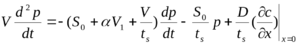 где - откачиваемый объем, - давление в откачи­ваемом объеме; - эффективная быстрота откачки; - коэффициент прилипания; объем газа, падающий на единицу площади в единицу времени; - площадь стенок откачиваемого объема; - количество газа, содержащегося в монослое на единице поверхности; - коэффициент заполнения поверхности; - время пребывания молекулы на поверхности в адсорбированном состоянии; - коэффициент диффузии; градиент концентрации газа в металле на его поверхности.