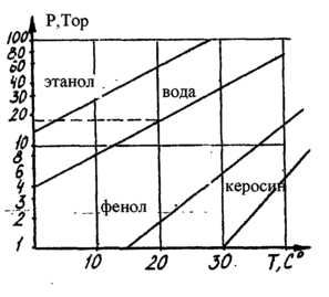 На рис. 22 даны зависимости давления насыщающих паров от температуры для некоторых рабочих жидкостей.