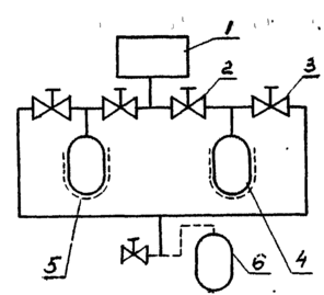 Схема вакуумной системы, использующей два адсорбционных насоса (поз.4 и 5) показана на рис. 35, где цифрами обозначены: