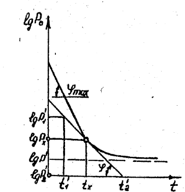где - угол, образуемый на графике касательной к кривой откачки с осью абсцисс в заданной точке (tx, lg Px).