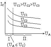 2) 0 <UA <UC. При этом часть электронов попадает на анод, образуя IA, а часть электронов возвращается к сетке, образуя IC. Таким образом, IK = IC +IA.