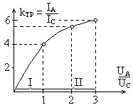 | | I - режим возврата электрода к сетке (при малых значениях UA ). II - режим примого перехвата электрода сеткой (при больших UA). |
