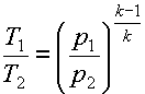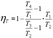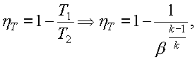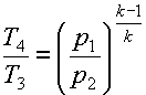 Ровно это же отношение температур можно выразить через величину применяемых в цикле отношений давлений и показатель адиабаты: