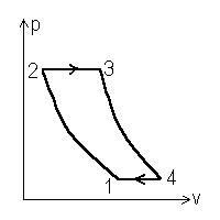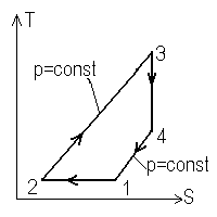 Теплота от рабочего тела к холодному источнику будет отводиться в изо-барном процессе 4-1 и в изотермическом процессе сжатия 1-2; при этом количество теплоты, отводимой в изобарном процессе 4-1, составляет: