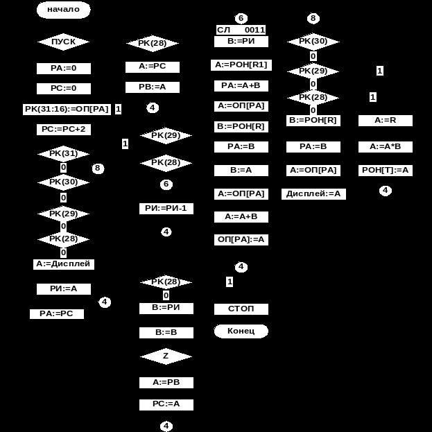 | Subсл1 | 1001 | A | 0 | Занесение ‘A.0’РОН[1] POH[1]:=R |