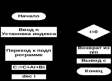 | сл2 | 0100 | 3 | 2 | Сложение2 (i-й элемент массива B складывается с результотам) A:=ОП[РОН[R1]+И] ОП[РА]:= ОП[РА]+A |
